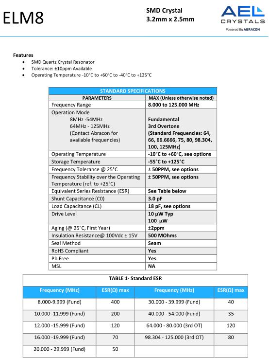 | Load Capacitance (CL) | 18 pF, Standard (see options if other than STD) |