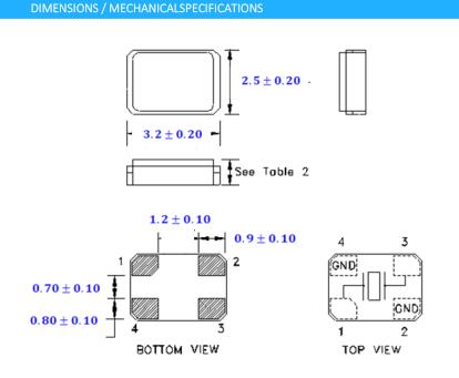 | Aging (@25°C±3°C First year ) | ±2ppm |