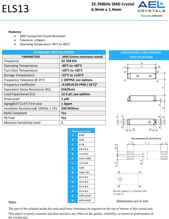 AEL晶振,ELS13晶振,ELS13-32.768kHz-7-4-T晶振