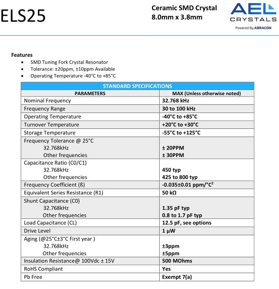 艾爾晶振,ELS25晶振,ELS25-32.768kHz-1-T晶振