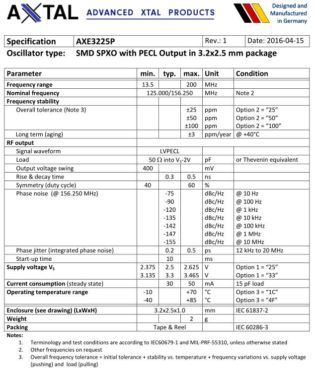 | Nominal frequency | 125.000/156.250 | MHz | Note 2 | ||
