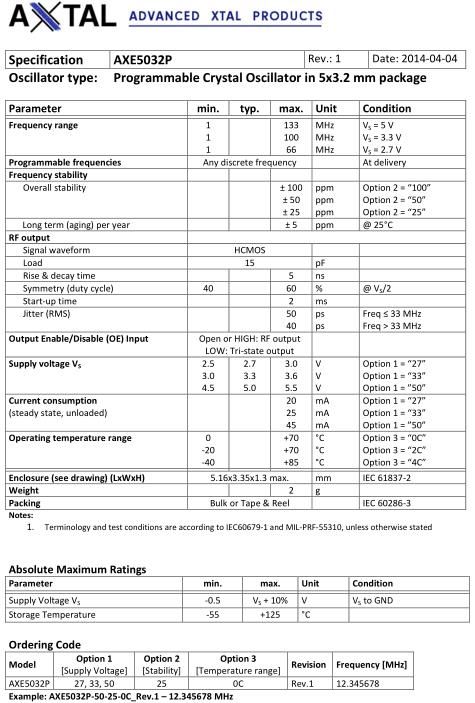 AXTAL晶振,AXE5032P晶振,AXE5032P-50-25-0C_Rev.1-12.000MHz晶振