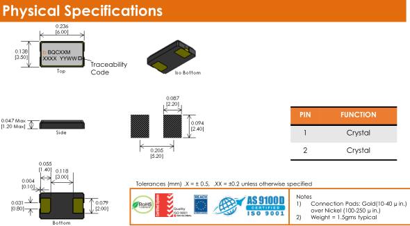 | Equivalent Series Resistance (max) | 8.0 – 10.0 MHz | 60 | Ω | |
