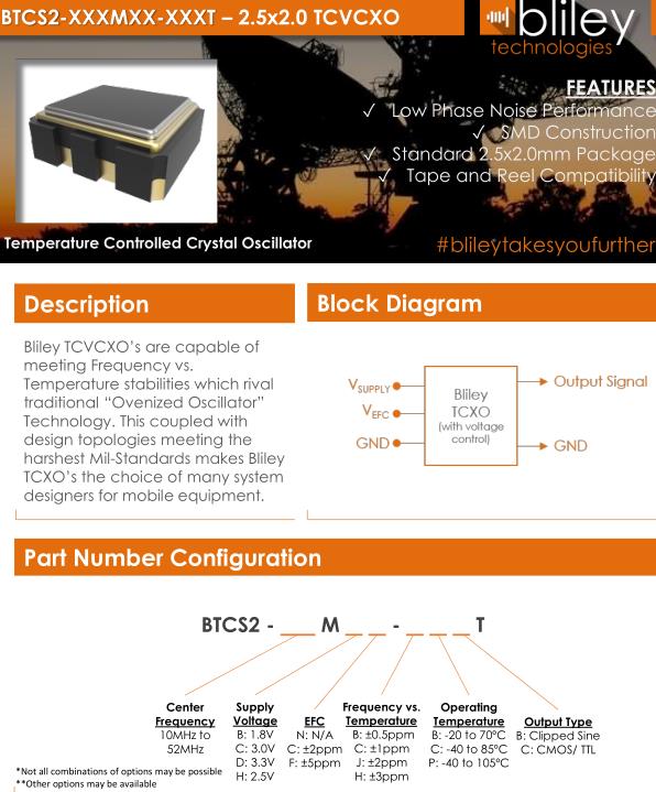百利晶振,BTCS2晶振,BTCS2-24.000M-CF-BCCT晶振,有源晶振,是指晶體本身起振需要外部電壓供應,起振后可直接驅動CMOS集成電路,產品本身已實現與薄型IC(TSSOP封裝,TVSOP封裝)同樣的1mm厚度,斷開時的消費電流是15µA以下,編帶包裝方式可對應自動搭載及IR回流焊接(無鉛對應)產品有幾種電壓供選1.8V,2.5V,3V3.3V,5V,以應對不同IC產品需要.Bliley Technologies Inc. 最初于 1930 年作為 Bliley Piezo-Electric Company 成立。最初,我們為業余無線電市場制造石英晶體。在 1930 年代中期,我們的客戶和產品很快擴大到與新興的軍事和商業通信領域的利益相匹配,我們的名稱更名為 Bliley Electric Company。1939 年,我們是最大的水晶公司,擁有 11 名員工。