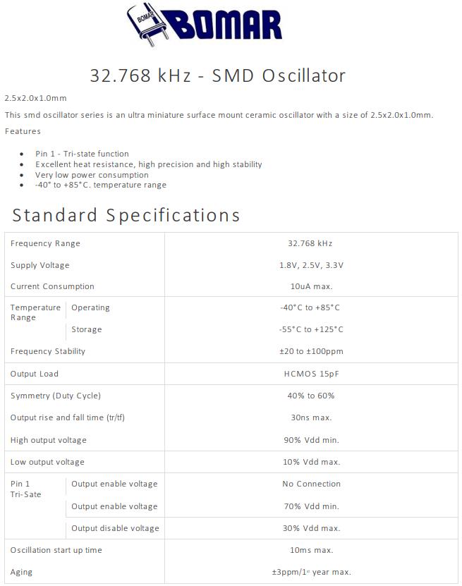 | Frequency Range | 32.768 kHz | |