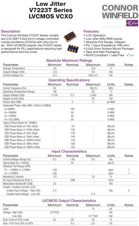 康納溫菲爾德晶振,V7223T晶振,V7223T-050.0M晶振