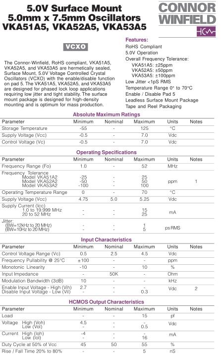 ConnorWinfield晶振,VKA51A5晶振,VKA51A5-20.00MHz晶振