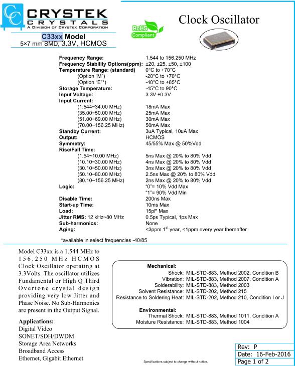 Crystek晶振,C33XX晶振,C3392-44.736MHz晶振