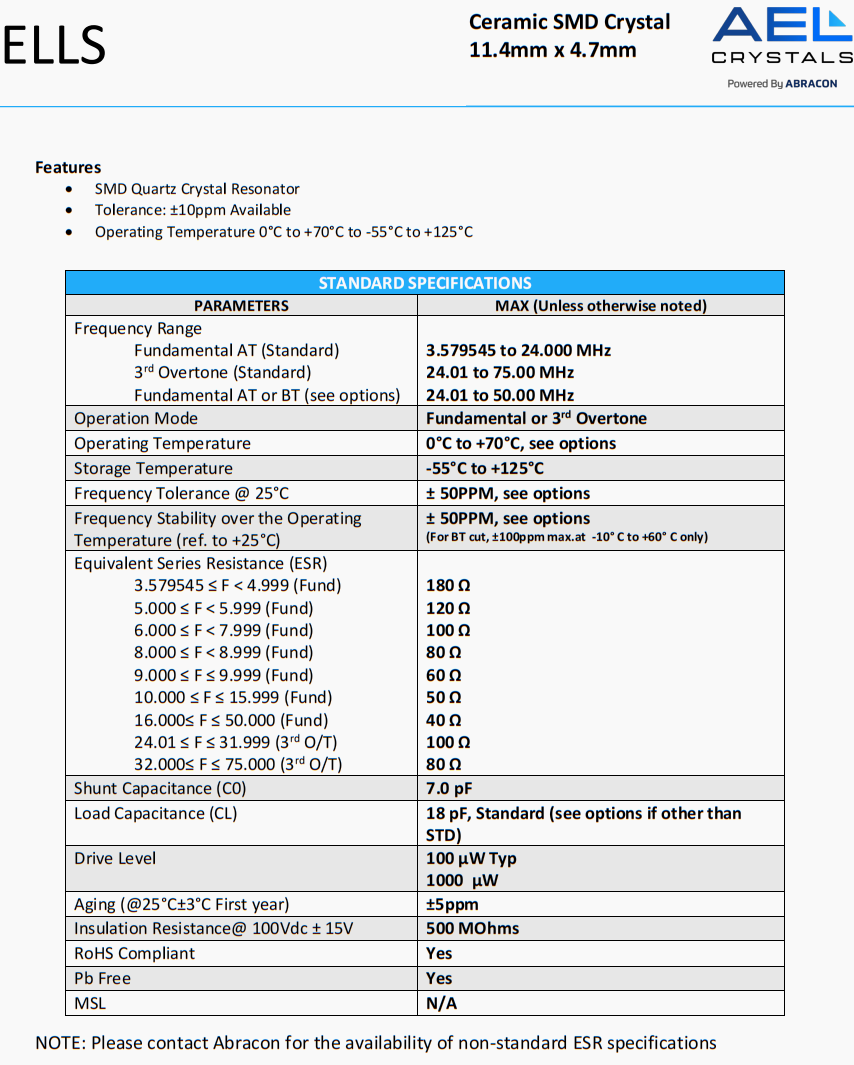 | 原廠型號(hào) Originalmodel: | ELLS-4.000MHz-16-R120-B1X-F-T | 品牌brand: | AEL Crystals |