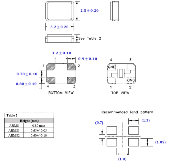| ELM11-32.000MHz-10-R60-D1X-T | AEL晶振 | ELM11 | MHz Crystal | 2mm | 1.6mm | 0.5mm |