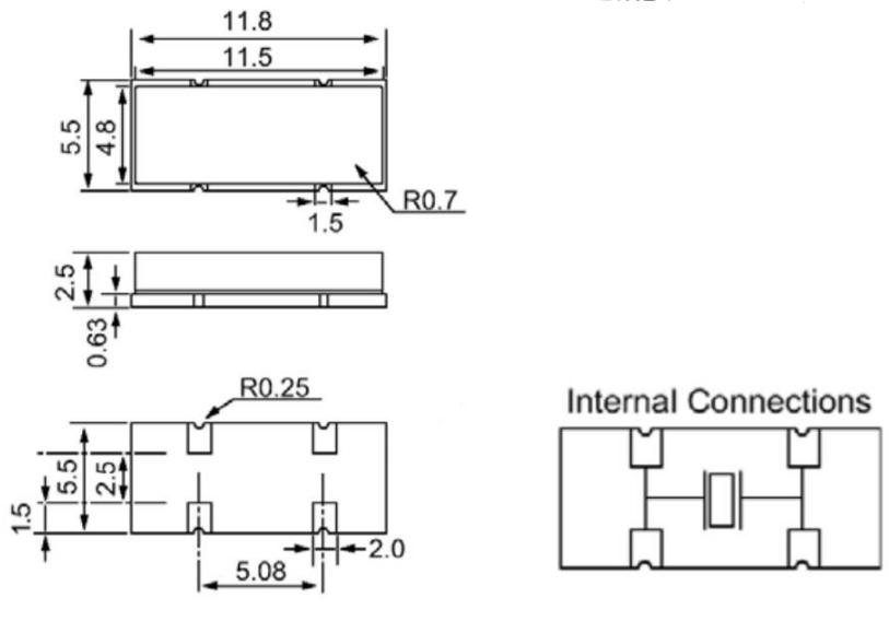 ECS-147.4-18-18-TR,CSM-12,ECS晶體諧振器,無線應用晶振,尺寸圖