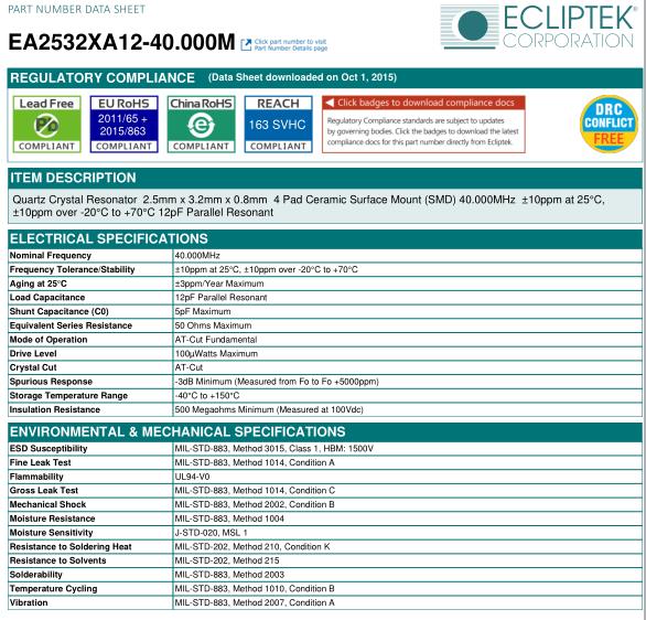Ecliptek晶振,EA2532XA12-40.000M晶振,無源四腳晶振
