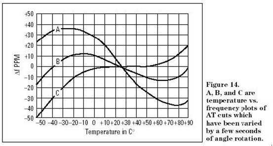 左邊以AT-CUT和BT-CUT為例,比較不同的切割方法對晶振參數的影響: AT-Cut: 切割角度:35013’(一般誤差在±3’,其誤差越小其溫度特性越好,) F(K)=1670(K)/t(mm) t為晶片之厚度,一般運用,溫度特性較發好,+/-30PPM BT-Cut: 切割角度:490 F(K)=2560(K)/t(mm) t為晶片之厚度, AT-Cut用于基頻高頻,溫度特性差, +/-100PPM 當AT-CUT與BT-CUT頻率一樣時,AT-CUT的本體要比BT-CUT的本體小,其C0,C1,L1也不一樣,如頻率為35MHZ,當其面積一樣時,AT-CUT本體的厚度為0.02mm,而BT-CUT的本體厚度為0.073mm. AT-CUT的C0為5.5pf,而BT-CUT的C0為2.7pf. AT-CUT溫度曲線如圖所示,現在我們所用的晶振的中心溫度值一般多為25±3oC,在-10 oC~70 oC這一區間,其溫度頻差一般為±30PPM,溫度特性較好.
