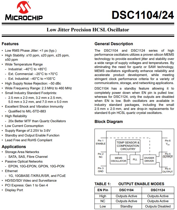 | DSC1104DE1-125.0000 | Microchip晶振 | DSC1104 | 125MHz | 2.25 V ~ 3.6 V |
