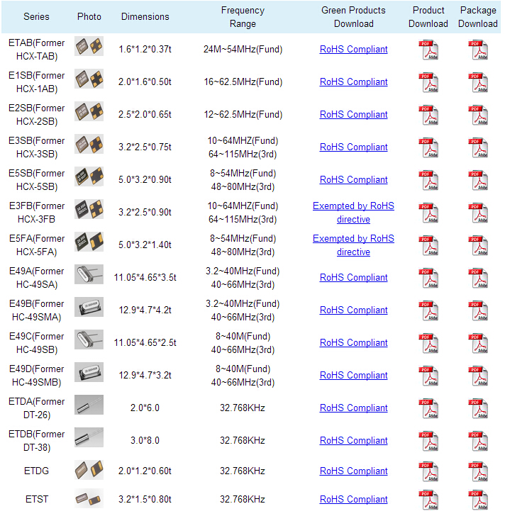 臺灣鴻星晶振中之前的HCX開頭的料號都是石英晶體諧振器,而以HXO開頭的料號則是石英振蕩器,以下是帝國科技整理的一份詳細(xì)鴻星新老型號參數(shù)資料,供大家采購選型時參考.