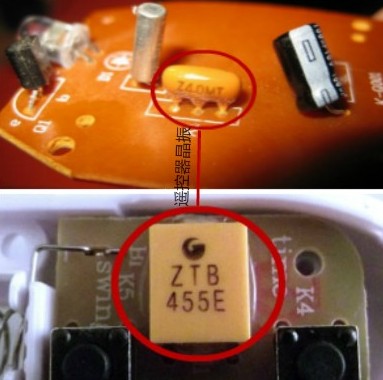 遙控器上的晶振采用CRB455E陶瓷諧振器,頻率455KHZ,諧振器頻率精度:455±2KHZ,諧振阻抗:20Ωmax,電容量:100PF±0.5%,諧振頻率溫度穩(wěn)定性:±0.3%(-20℃—+80℃)max,耐電壓:50V DC max,輸入最大電壓:15Vp-p max,絕緣電阻:10MΩ(100V,DC)max