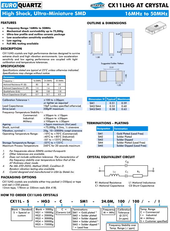 | Euroquartz晶振規格 | 單位 | CX11LHGAT晶振頻率范圍 | 石英晶振基本條件 |