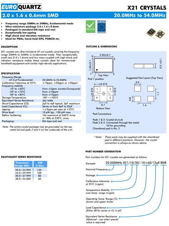 | Euroquartz晶振規格 | 單位 | X21晶振頻率范圍 | 石英晶振基本條件 |