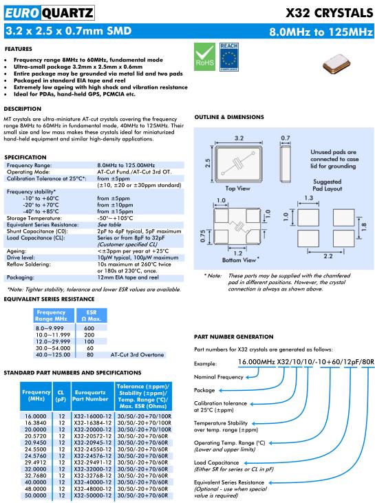 | Euroquartz晶振規(guī)格 | 單位 | X32晶振頻率范圍 | 石英晶振基本條件 |