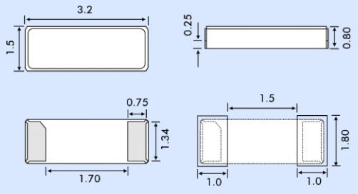 在一個不同擴張系數電路板(環氧玻璃)上焊接陶瓷封裝石英晶振時,在溫度長時間重復變化時可能導致端子焊接部分發生斷裂,請事先檢查焊接特性。Euroquartz晶振,X3215晶振,X3215-32.768K-12.5-5晶振.