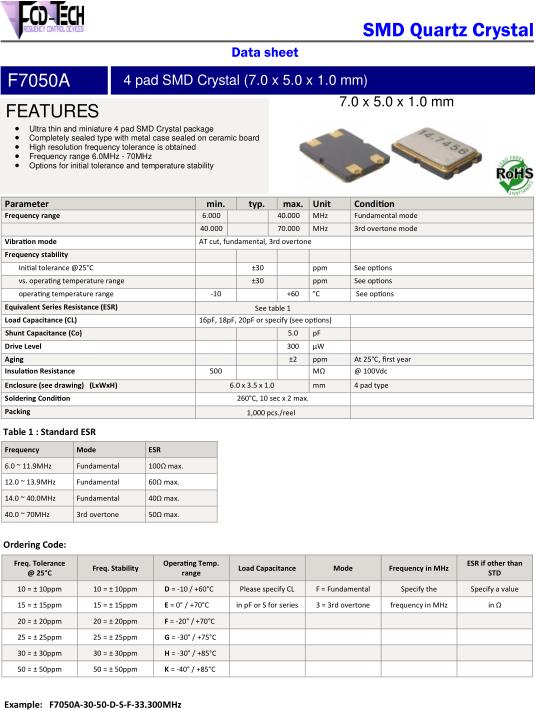 | 40 | 70 | MHz | 3rd overtone | ||