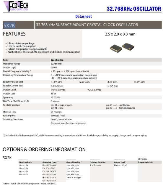 FCD-Tech晶振,SX2K晶振,SX2K-33F20E15-32.768kHz晶振