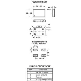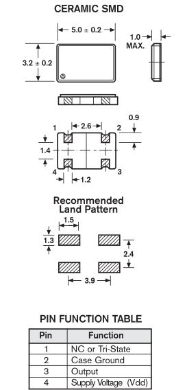 No Connect (Std.) Tri-State (option T) VIH: 2.2 V or Open Enables Output VIL: 0.8 V Disables Output Output Disable/Enable Time: 100 nS max. |