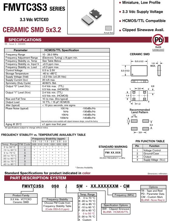 FMI Crystal成立于1971年,主要研發生產FMI晶振,TCXO振蕩器,有源晶振等產品,同時專注于為各行業的各種電子系統提供頻率和時序控制的工程解決方案.FMI晶振,FMVTC3S3晶振,FMVTC3S3050JSW-16.000M-CM晶振.