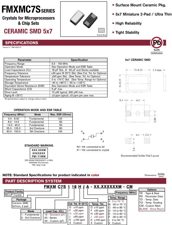 FMI晶振,FMXMC7S晶振,FMXMSC7S118HJA-24.000M-CM晶振