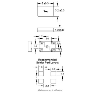 福克斯晶振C5BQ,FQ5032B-20.000無源晶體 尺寸圖