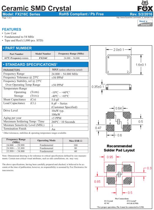 | FOX晶振規(guī)格 | 單位 | FX216C晶振頻率范圍 | 石英晶振基本條件 |