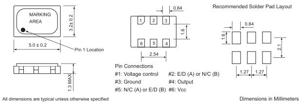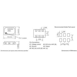 | Control Voltage (Vc) | +2.5V ± 2.0V for 5.0V part; +1.65V ± 1.5V for 3.3V part |