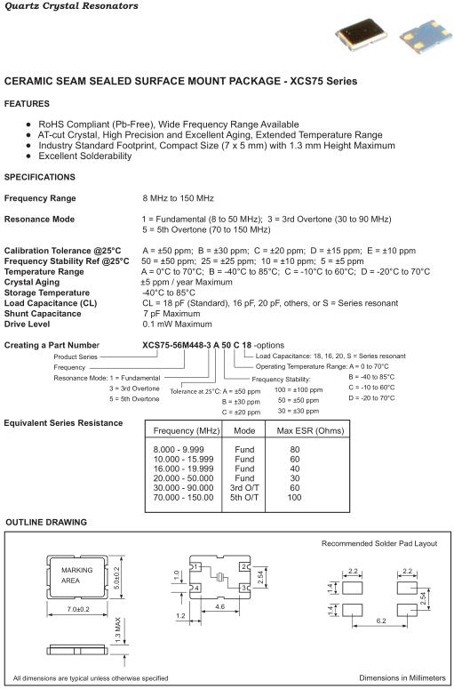 Fortiming晶振,XCS75晶振,XCS75-56M448-3A26C18晶振