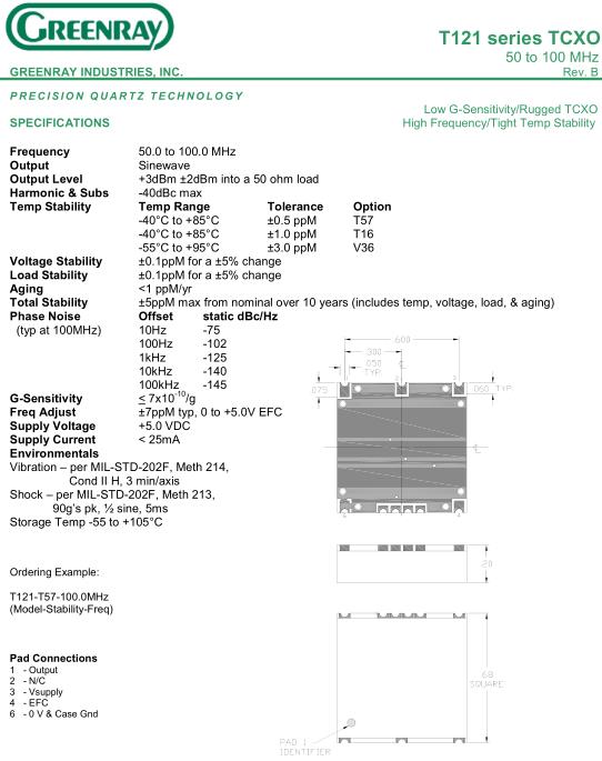 Greenray晶振,T121晶振,T121-T57-100.0MHz晶振