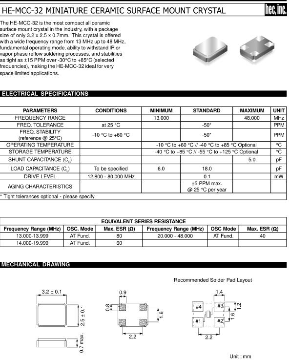 HEC晶振,HE-MCC-32晶振,水晶振動子