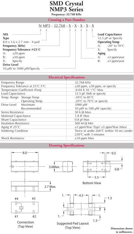 | DRIVE LEVEL | 8.192 MHz - 100 MHz | 100 µ W max. | µW |
