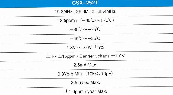 - 頻率:19.200~38.400MHZ
