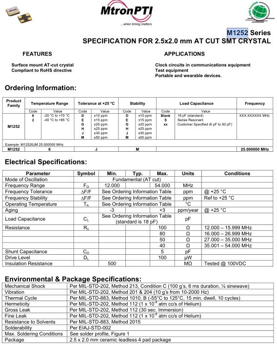 MtronPTI晶振,M1252晶振,M12526JM25.000000MHz晶振