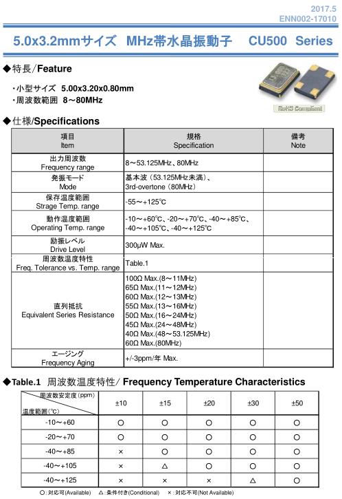 NAKA晶振,CU500晶振,四腳貼片晶振
