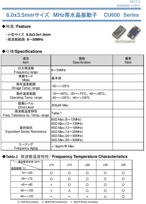 - 產(chǎn)品描述:納卡晶振,CU600晶振,6035mm貼片晶振,貼片晶振本身體積小,超薄型石英晶體振蕩器,特別適用于有目前高速發(fā)展的高端電子數(shù)碼產(chǎn)品,因為晶振本身小型化需求的市場領域,小型,薄型是對應陶瓷振蕩器(偏差大)和普通的石英晶體振...