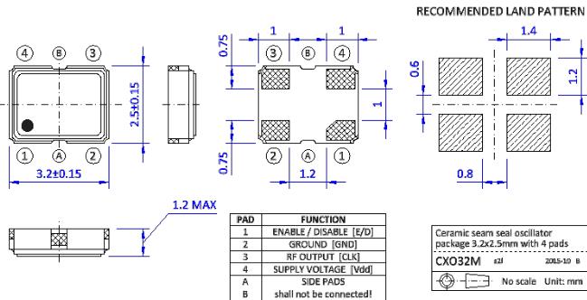 | Standby function (enable/disable on pin 1) | E/D | Pin1 = High or open -> Output pin3 active Pin1 = Low -> Output pin3 high impedance | ·  Output high impedance = TRI-STATE Pin1 can be left open = floating |