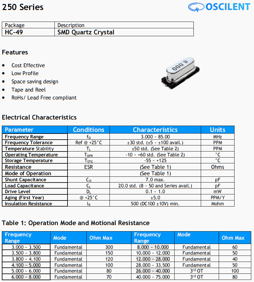 250-4.0M-18-S-TR晶振,進口奧斯康利49SMD晶振,6G室外基站晶振,美國Oscilent晶振公司,特點,成本效益,低配置,節(jié)省空間的設計,磁帶和卷軸,符合RoHs/無鉛標準。奧斯康利晶振,歐美晶振,高品質(zhì)晶振,貼片晶振,49SMD晶振,石英晶振,無源晶振,高精度晶振,6G通訊設備晶振,無線傳輸晶振,局域網(wǎng)晶振,小體積晶振,低損耗晶振 ,北斗衛(wèi)星定位模塊晶振,6G無線網(wǎng)晶振,高精度晶振。