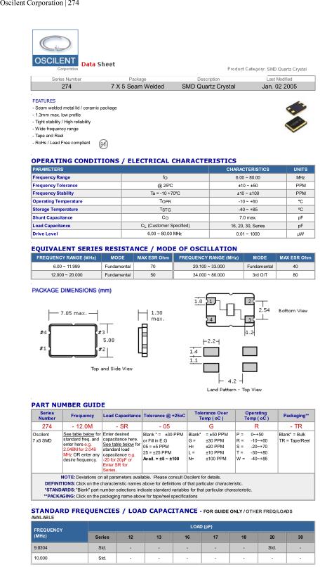 Oscilent晶振,274晶振,274-12.0M-SR-05-G-R-TR晶振