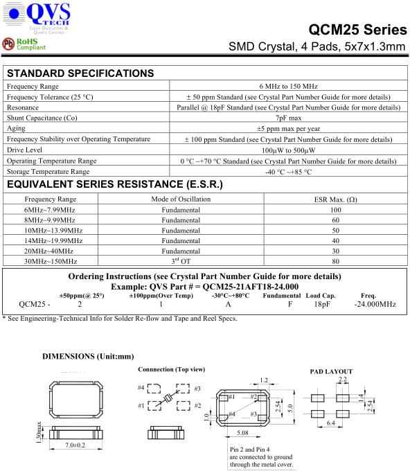 QVS晶振,QCM25晶振,QCM25-21AFT18-24.000晶振