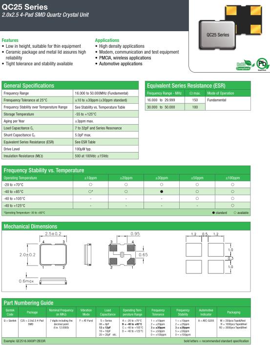 | General Specifications-QANTEK晶振 | QC25晶振 |