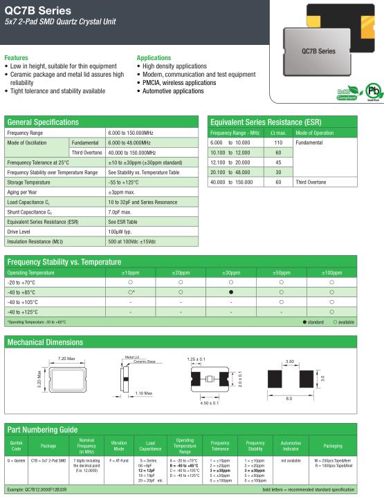 | General Specifications-QANTEK晶振 | QC7B晶振 | |