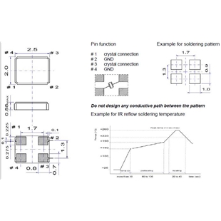 將晶振加熱包裝材料至+150°C以上會破壞產品特性或損害產品.如需在+150°C以上焊接石英晶振,建議使用SMD晶振產品.在下列回流條件下,對石英晶振產品甚至SMD貼片晶振使用更高溫度,會破壞晶振特性.建議使用下列配置情況的回流條件.安裝這些貼片晶振之前,應檢查焊接溫度和時間.同時,在安裝條件更改的情況下,請再次進行檢查.如果需要焊接的晶振產品在下列配置條件下進行焊接,請聯系我們以獲取耐熱的相關信息.