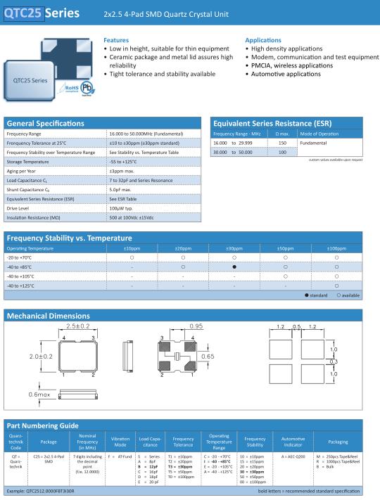 夸克晶振,QTC25晶振,QTC2512.0000FBT3I30R晶振
