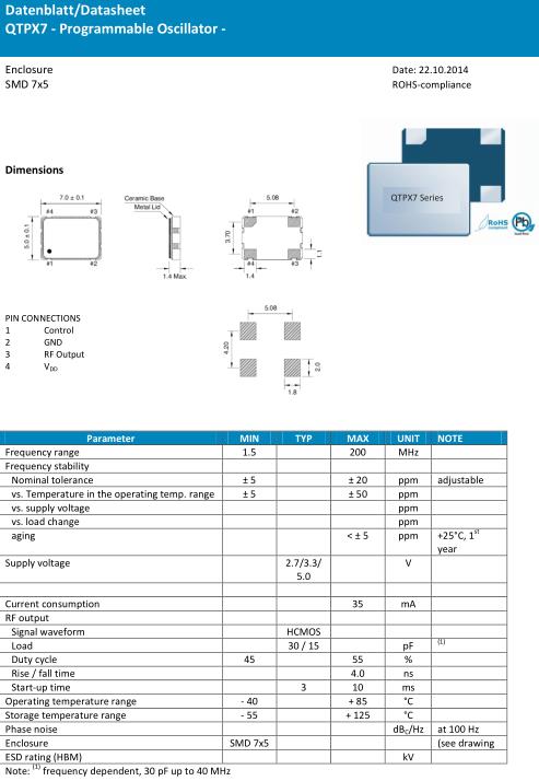 Quarztechnik晶振,QTPX7晶振,7050mm有源晶振,小型SMD有源晶振,從最初超大體積到現(xiàn)在的7050mm,6035mm,5032mm,3225mm,2520mm體積,有著翻天覆地的改變,體積的變小也使產(chǎn)品帶來了更高的穩(wěn)定性能,接縫密封石英晶體振蕩器,精度高,覆蓋頻率范圍寬的特點,SMD高速自動安裝和高溫回流焊設計,Optionable待機輸出三態(tài)輸出功能,電源電壓范圍:1.8V?5V,高穩(wěn)定性,低抖動,低功耗,主要應用領域:無線通訊,高端智能手機,平板筆記本W(wǎng)LAN,藍牙,數(shù)碼相機,DSL和其他IT產(chǎn)品的晶振應用,三態(tài)功能,PC和LCDM等高端數(shù)碼領域,符合RoHS/無鉛.Quarztechnik晶振公司作為德國振蕩石英晶體和振蕩器制造商已有50多年的歷史,我們生產(chǎn)各種產(chǎn)品 - 從通道晶體,振蕩石英晶體和石英振蕩器到基于壓電單晶的傳感器元件。我們的產(chǎn)品應用于所有類型的無線電應用,如用于制造振蕩器和壓力,溫度和質(zhì)量敏感傳感器元件的精密晶體。