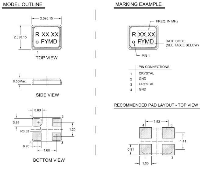 | 頻率溫度特征 | f_tem | ±30 × 10-6/-20°C ~ +70°C | 超出標準的規格請聯系我們. |